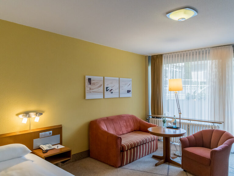 All our single rooms are furnished with a comfortable single bed (120 x 200 cm), a desk, comfortable seating area, telephone, mini fridge and flat screen TV with cable TV and Sky.